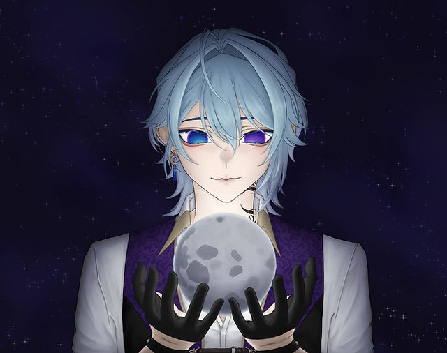 Digital painting of Tsukigami Len holding the moon, animated in AfterEffects.